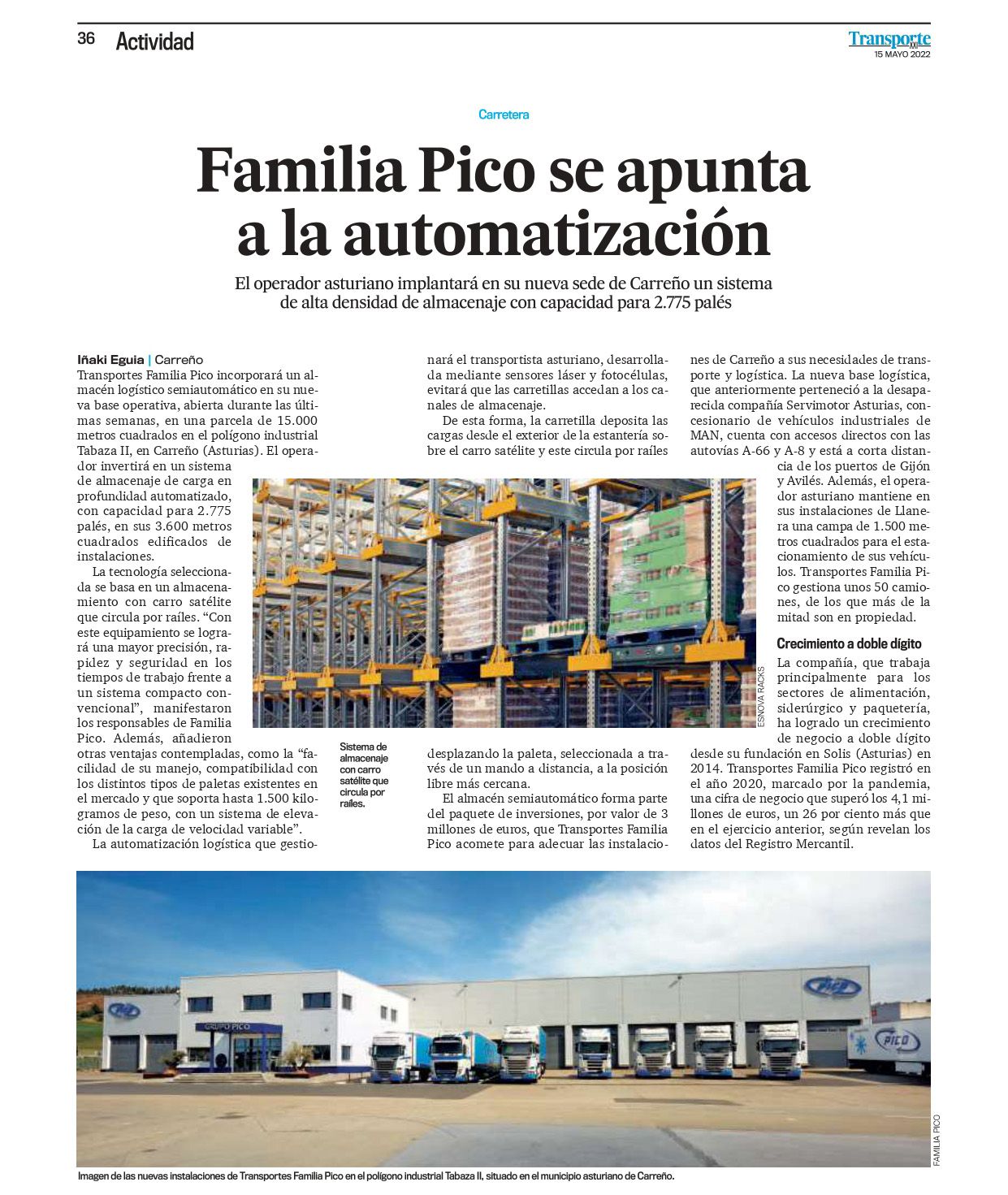 Esta compañía asturiana ha logrado ser catalogada como una empresa ‘gacela’, es decir, aquellas con crecimientos anuales de dos dígitos, incluso en tiempos de crisis. Fue en este periodo cuando decidieron crear una nueva empresa llamada AGENCIA LOGÍSTICA PICO, S.L., fortaleciendo así junto a TRANSPORTES FAMILIA PICO, S.L., el grupo. Ofrecen servicios integrales de gestión, transporte y picking para reducir costes y mejorar la productividad; optimizan el transporte nacional de mercancías eligiendo las rutas más adecuadas y ofreciendo todo tipo de servicios para garantizar que todos los productos y mercancías lleguen a su destino final en el tiempo establecido. Además, disponen de un sistema de seguimiento online para que los clientes sepan en todo momento dónde se encuentra la mercancía y la ruta seguida hasta llegar a su destino.